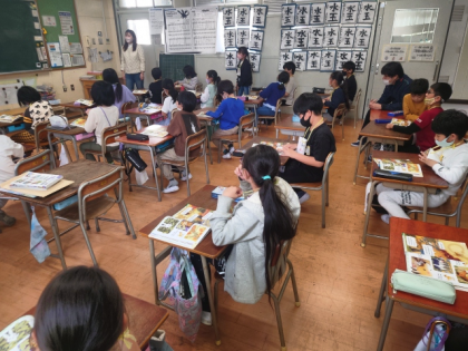今日は、教科書のお話の中に出てくる動物を見つけて、英語の表現で何と呼ぶか学習しました。