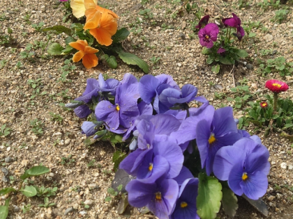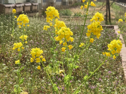 学習園の菜の花や、焼野地域からいただいたお花がきれいに咲いています。