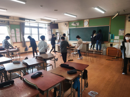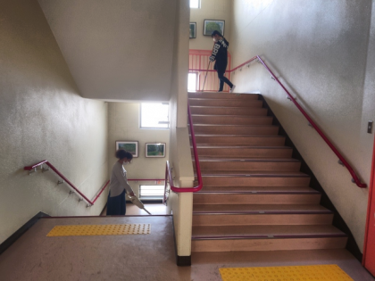 6年間お世話になった校舎に感謝の気持ちをこめて、学校のあちらこちらを掃除しています。