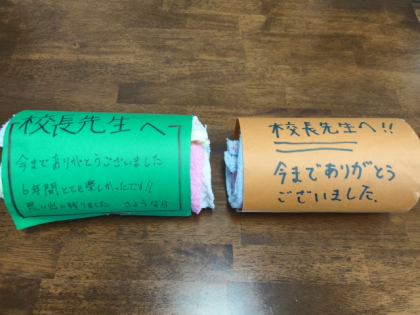 6年生の子どもたちが、職員室に手作りぞうきんをプレゼントしてくれました!
