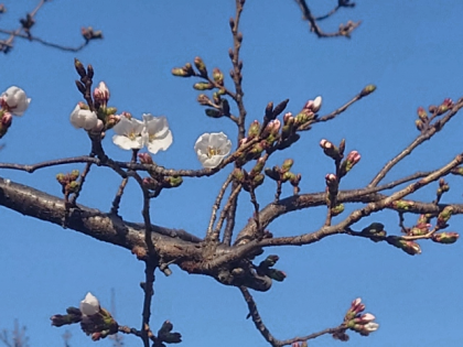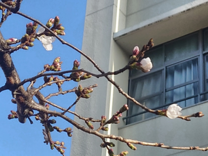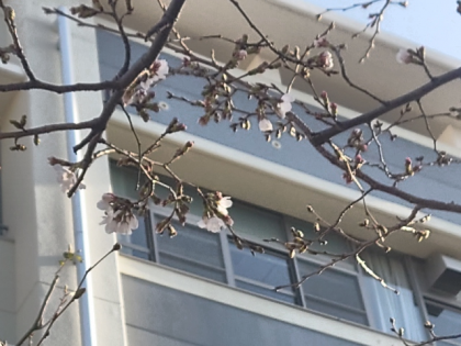 大阪の桜の開花宣言はまだのようですが、学校の桜が開花しました!