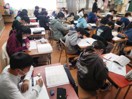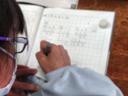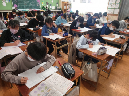 算数科の時間は、教科書の1年間のまとめの問題を一生懸命考えて解いています。