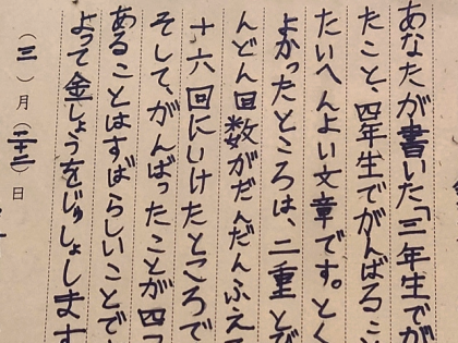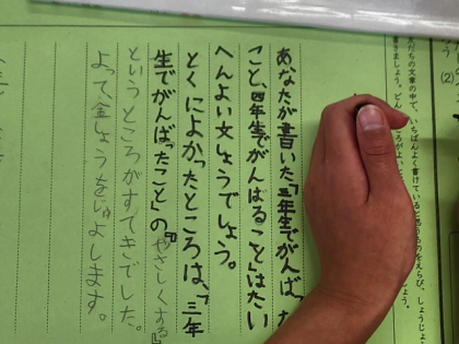 国語科の時間は、友達の文章の中で、いちばんよく書けていると思うものを選び、賞状を作りました。