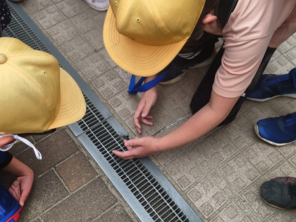 子どもたちが、そっとすくって、木にとまらせてあげていました。