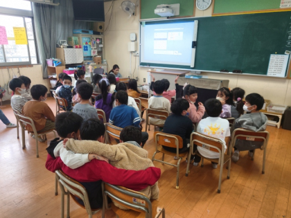 午前中は、各学級で1年をふり返ったり、お楽しみ会をしたり、通知表を渡したり、春休みの生活について話をしたりしてすごしました。