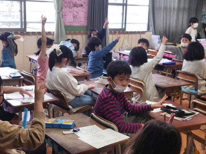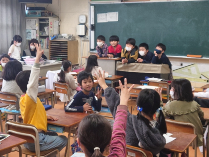 午前中は、各学級で1年をふり返ったり、お楽しみ会をしたり、通知表を渡したり、春休みの生活について話をしたりしてすごしました。