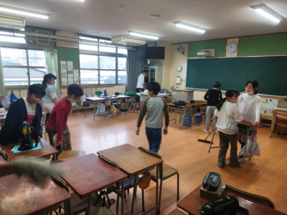午前中は、各学級で1年をふり返ったり、お楽しみ会をしたり、通知表を渡したり、春休みの生活について話をしたりしてすごしました。