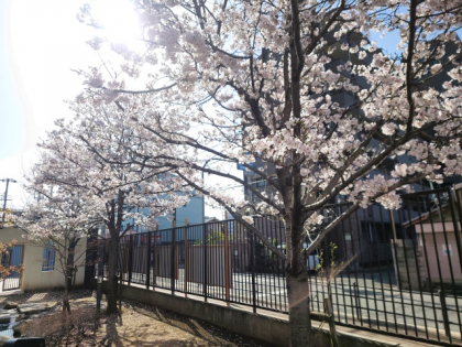 やけのしょうがっこうの さくらは、いま まんかいです。