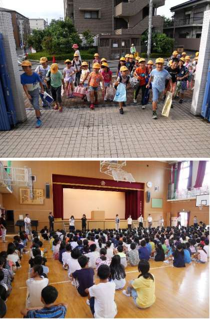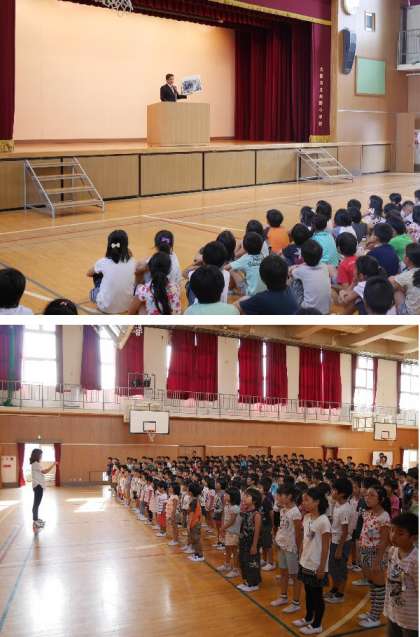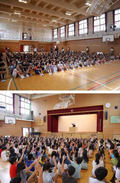 校長先生から夏休みどうでしたかの問いに元気よく手をあげて応えてくれていました。9月1日は防災の日ということで、92年前の関東大震災についてお話しました。最後に全員で久しぶりに焼野小校歌を歌いました。