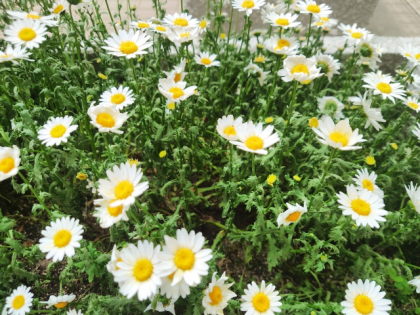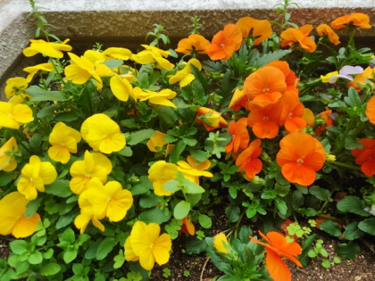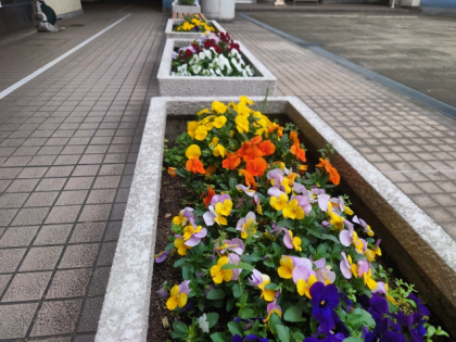中庭のプランターのお花たちも、入学式に合わせるようにきれいに咲いています。