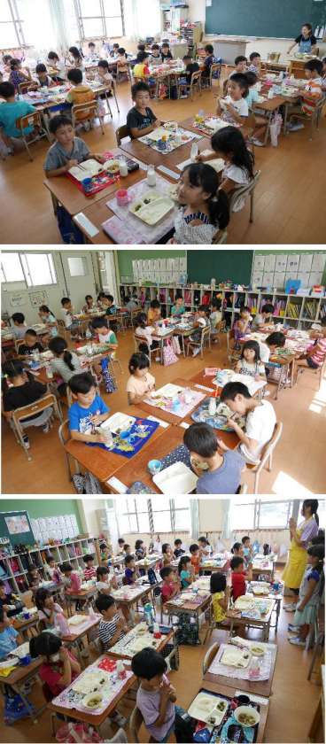 1年生でも久しぶりの給食を楽しそうにいただきました。ひさしぶりに牛乳を飲んだ子もいたようです。