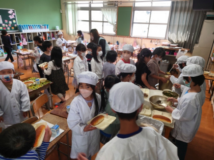 今日は、新しい学年になって初めての給食です。