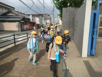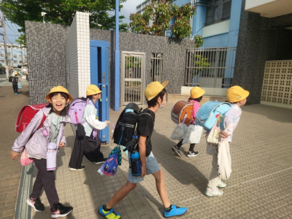 子どもたちの元気な声が正門にひびいています。