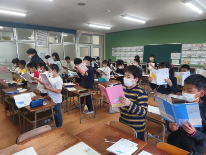 みんなで声を合わせて、しっかりと音読することができました。
