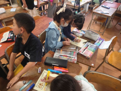 学級活動の時間は、係のグループに分かれて、メンバーや仕事内容を知らせるための掲示物を作りました。