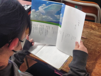 国語科の時間は、教科書の詩「いのち」の音読をしました。