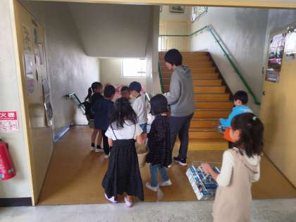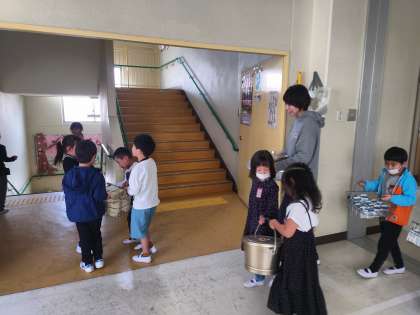 おいしい給食を食べ終わって、みんなで片づけをしています。
