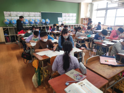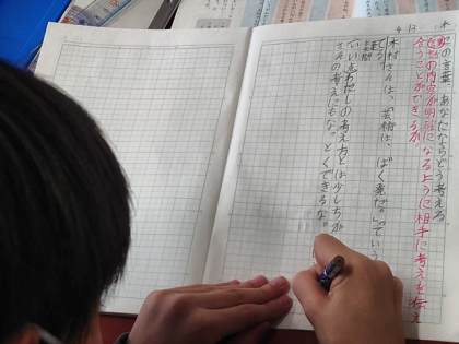 国語科の時間は、今までに見たり聞いたりした言葉の中で、心に残っているものを友達に紹介し、その言葉をどのようにとらえたかを伝え合います。