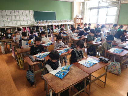 音楽の時間は「ア ラム サム サム」や「小さな世界」の曲をみんなで楽しく歌いました。