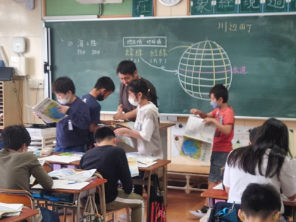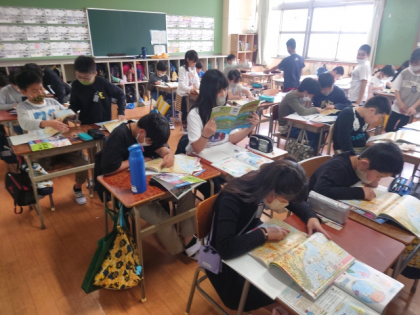 社会科の時間は、地図帳を見ていろいろなまちの名前を探しました。