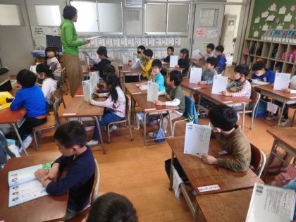 子どもたちは楽しんで元気に声を出して読んでいました。