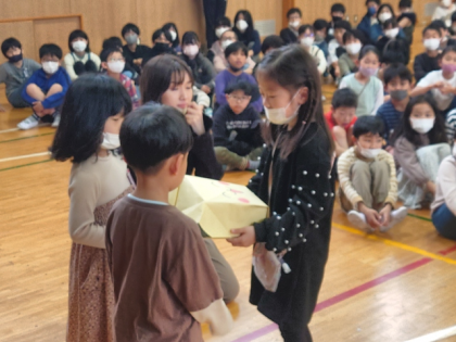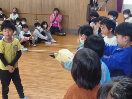 その後、2年生から1年生に「花の種」をプレゼントしました。