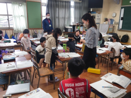今日は、「月がきまりわるそうにしたのはなぜか」という課題について考えたあと、みんなで考えたことを活かしてみんなで音読をしました。