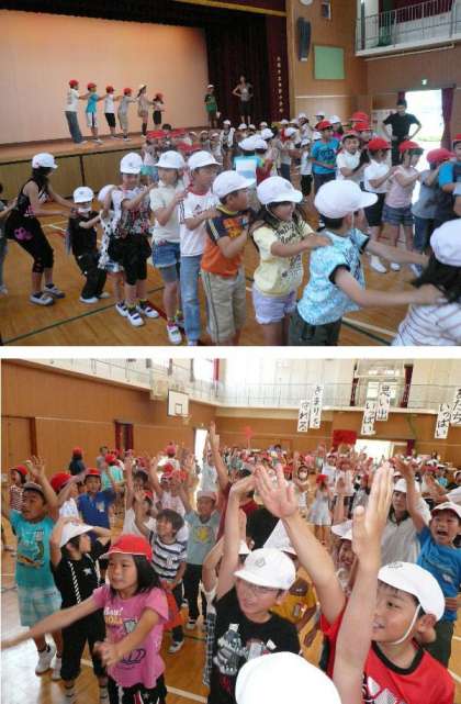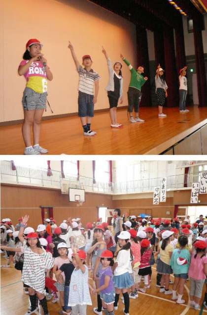 二つ目のゲームは「じゃんけんジェンカ」、三つ目は「縦割り班対抗ジェスチャーゲーム」でした。元気よくあそんだので、1年生は少し疲れてしまいましたね。