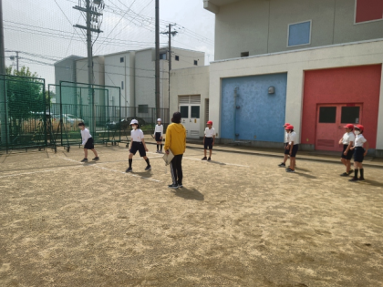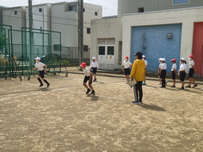 体育科の時間は、運動場で50m走の練習をしました。