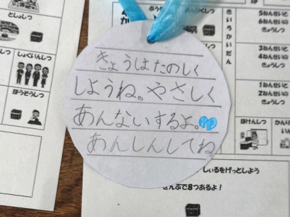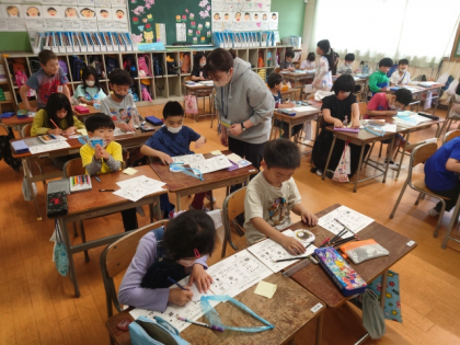 おねえさん、おにいいさんらしく、1年生にやさしく学校のことを教えてあげてくださいね。