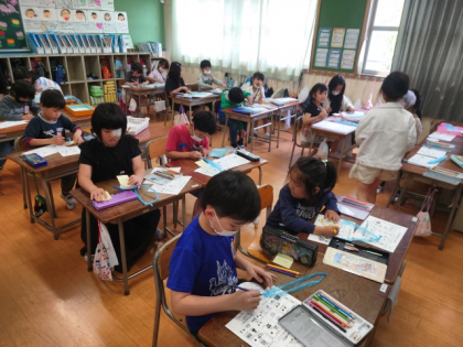 生活科の時間は、2年生が体育館や保健室、理科室、学習室など、学校のいろいろな部屋や教室を1年生に紹介します。