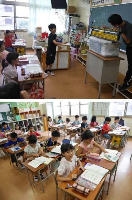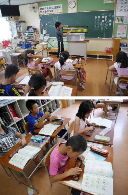 4年生では、そろばんを使って、小数点のある数のたし算とひき算の計算の仕方を学習しています。そろばんは3年生でも使い方を学習しましたね。おぼえていましたか。