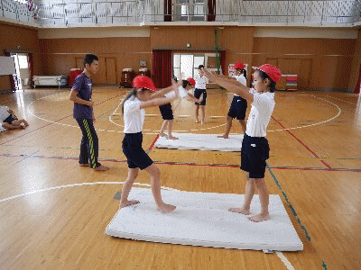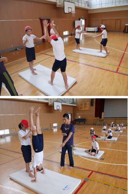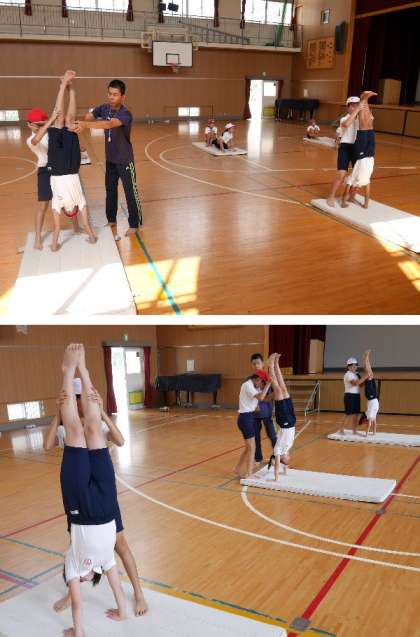 6年生の運動会にむけた基礎練習が始まりました。基礎的な運動として倒立を練習しています。さすがは6年生ですね。