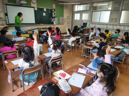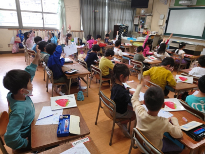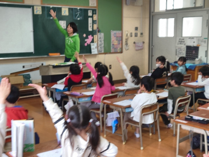 担任が「どんな『え』のつく言葉があるか」と聞くと、たくさんの子どもたちが手を挙げて発表していました。