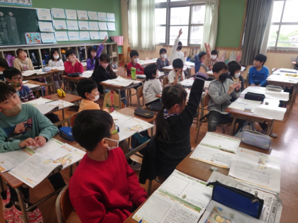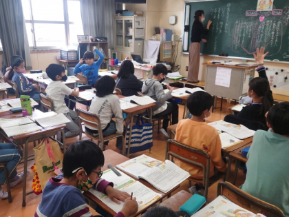 道徳の時間は、教科書の教材文「あいさつができた」の学習をしました。
