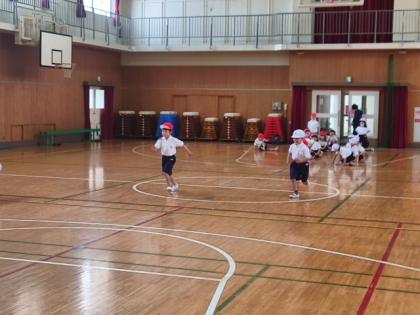 体育科の時間は、体育館で楽しく体を動かしました。