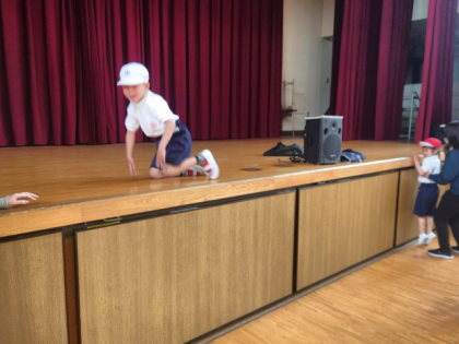 舞台に上がるのは、なかなか難しいようで、手伝ってもらってようやく上がることができた子が多かったです。