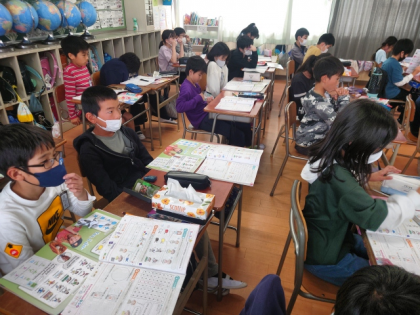 英語科の時間は、"I like〜""What do you like〜?"などの表現を使って、好きなもの、ことをたずね合う英語の表現を学習しました。