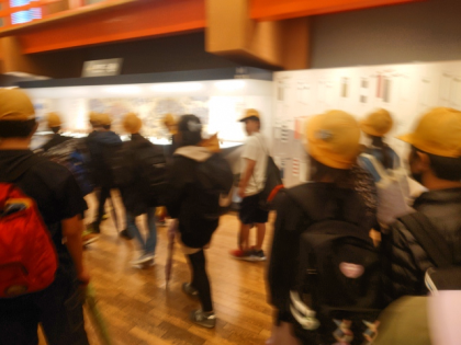 大阪城天守閣内を見学中。