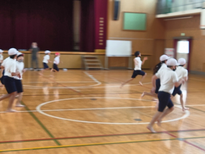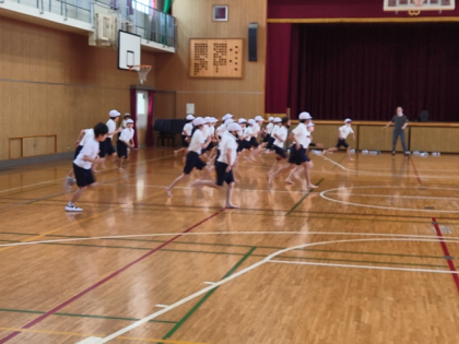 体育科の時間は、体力テストの「20mシャトルラン」の計測をしました。