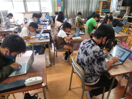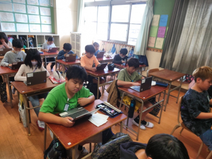1人1台学習者用端末を使って、タイピングの練習をしています。