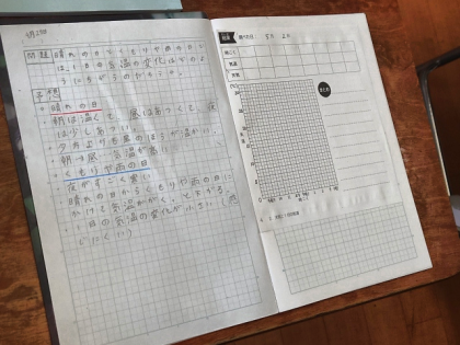 理科の時間は、晴れの日とくもりや雨の日では、1日の気温の変化はどのようにちがうのか調べました。