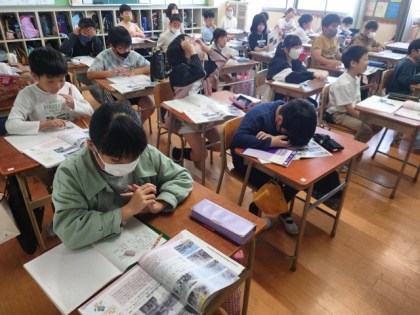 社会科の時間は、教科書を見て、大阪府の交通について調べました。
