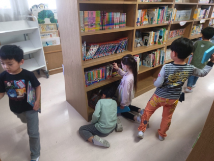 図書室で、自分が読みたい本を選んで読んでいます。