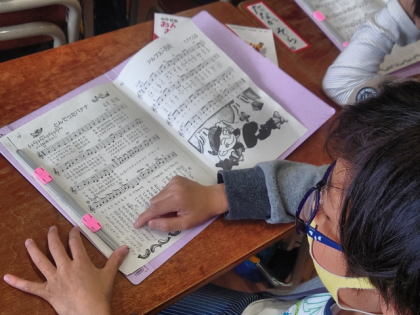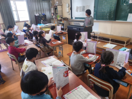 音楽科の時間は、「とんでったバナナ」などの曲を楽しく歌いました。