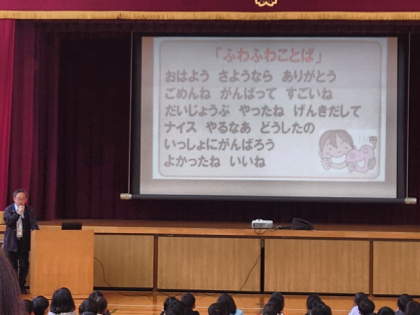 そして、『ふわふわ言葉』で、一人一人の心の中にきれいなお花を咲かせましょう。」