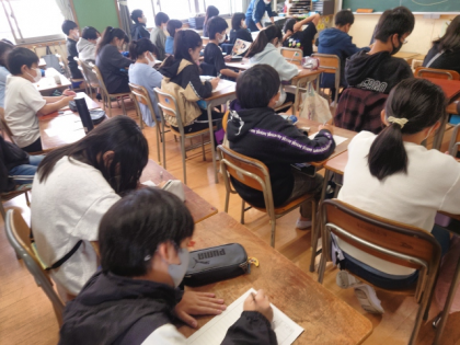 児童朝会のあと、校長講話の内容をもとに、各学級で「いじめ」について学級で話し合ったり、思ったことや考えたことをワークシートに書いたりしました。