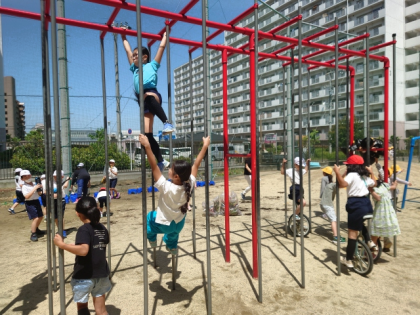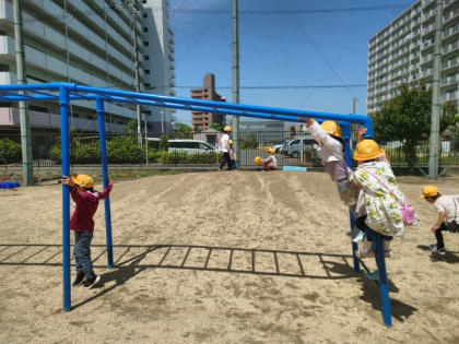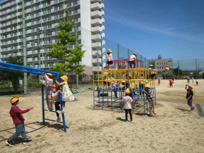 子どもたちが元気に外遊びしています。