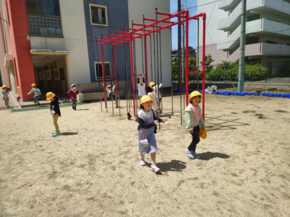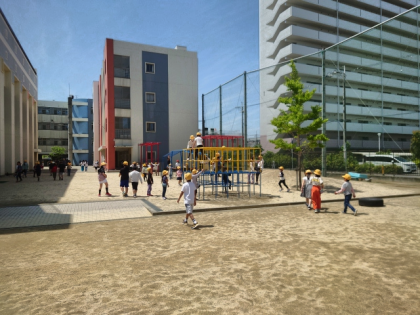 子どもたちが元気に外遊びしています。