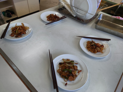 焼きそばを炒めています。